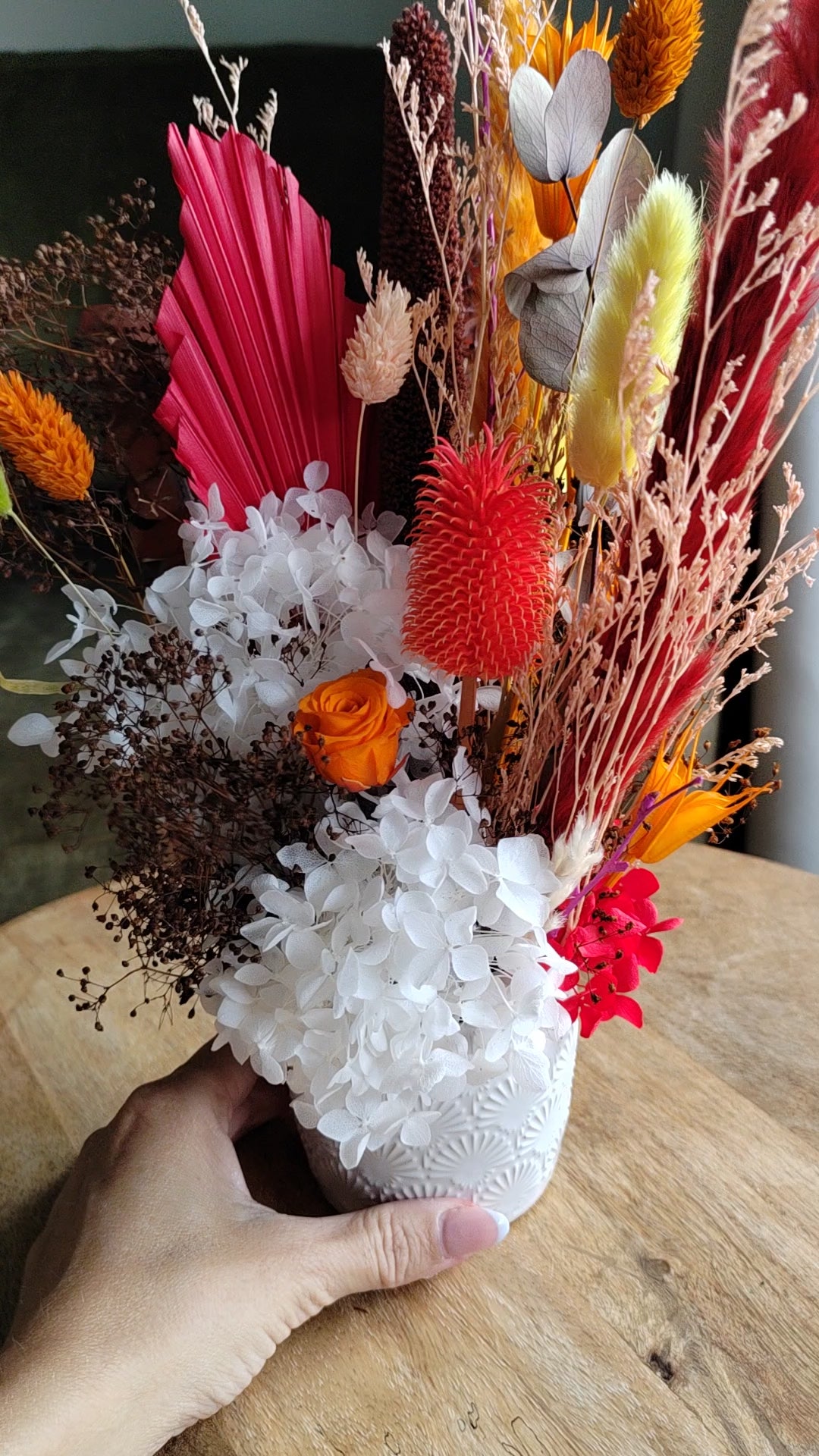- Dried and preserved flowers are fragile, if there’s any breakage on the larger stems you can carefully cut them and add them at the bottom of your vase for a little personal touch.